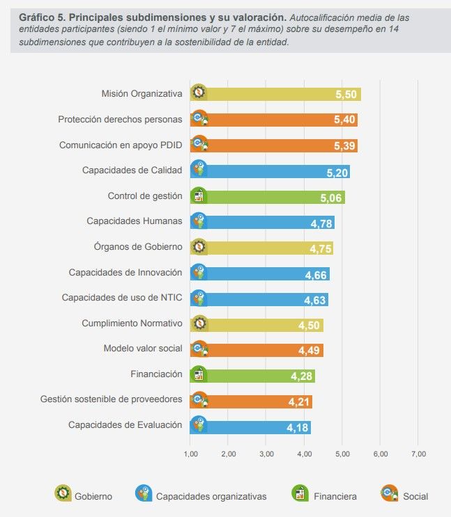 Las entidades evaluadas obtuvieron en general "calificaciones entre el aprobado alto y el notable bajo" en sus autoevaluaciones: "Se observaron puntos fuertes en el cumplimiento de la misión, la calidad de los servicios o la comunicación con los grupos de interés". No obstante, el análisis también reveló "retos comunes, como la escasa participación en los órganos de gobierno, la falta de evaluación interna o la limitada diversificación de fuentes de financiación".