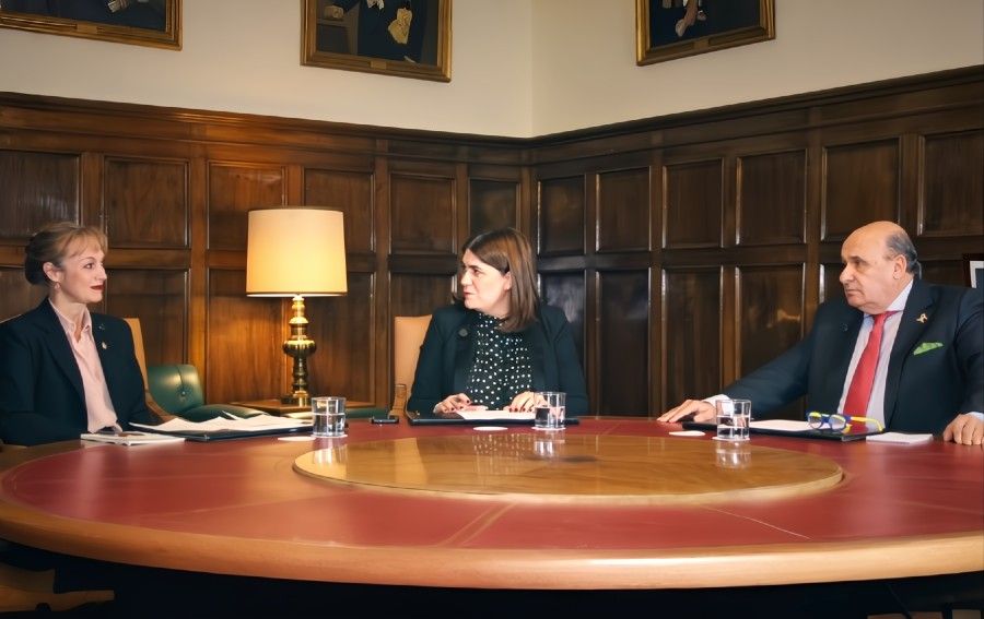 Según informó el Instituto de España, en la sesión del ciclo 'Hablamos de...' participaron la académica de la Real Academia de Ciencias Económicas y Financieras y catedrática de la Universidad de Barcelona Ana María Gil Lafuente y Castor Díaz Barrado, catedrático de la Universidad Rey Juan Carlos y miembro de la Real Academia de Jurisprudencia y Legislación.