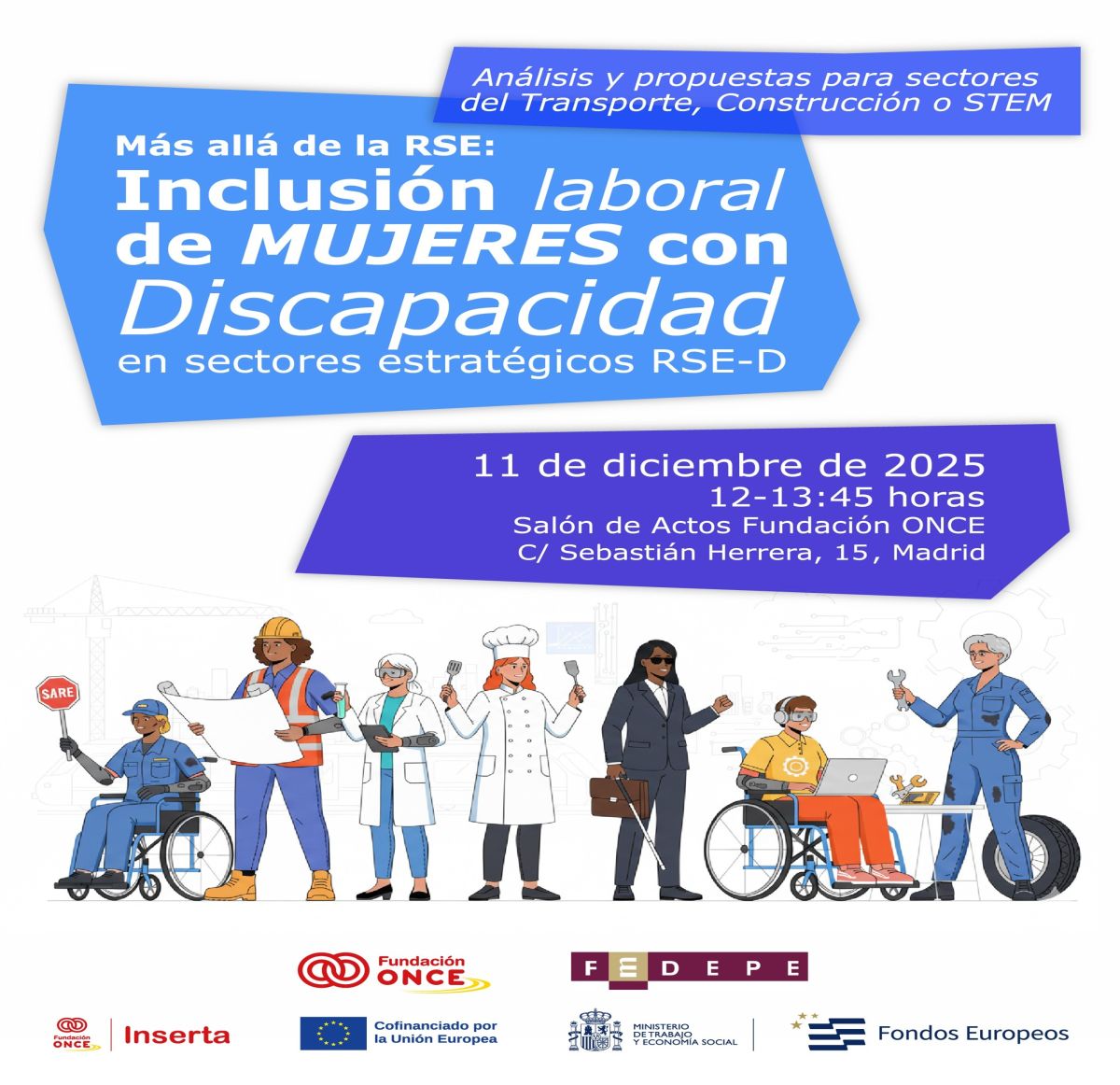 El encuentro lleva por título ‘Más Allá de la RSE: Inclusión Laboral de Mujeres con Discapacidad en sectores estratégicos RSE-D. Análisis y propuestas para sectores del Transporte, Construcción o STEM’ y en él participarán Virginia Carcedo, secretaria general y directora de Transformación, Excelencia e Igualdad de Fundación ONCE; Ana Bujaldón, presidenta de Fedepe, y Patricia Sanz, presidenta del Observatorio de Igualdad de Oportunidades del Grupo Social ONCE.