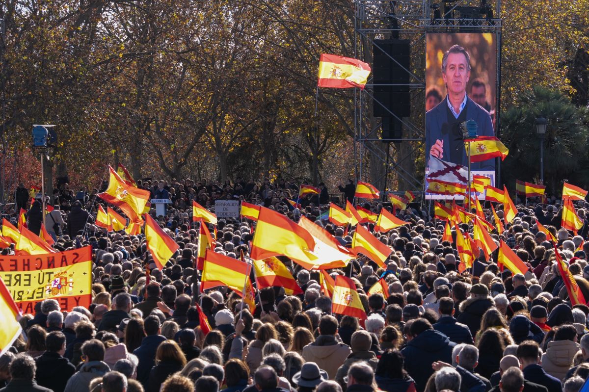 Así lo proclamó en su intervención durante la concentración del PP en el Templo de Debod, bajo el lema ‘Efectivamente, mafia o democracia’ y al son de ‘El Padrino’. Decenas de millares de manifestantes –la Delegación del Gobierno calcula que asistieron 40.000, una cifra que la organización duplica y eleva hasta 80.000– jalearon “Sánchez, a prisión” en varias ocasiones y tanto él como la presidenta de la Comunidad de Madrid, Isabel Díaz Ayuso, deslizaron insinuaciones con este escenario.