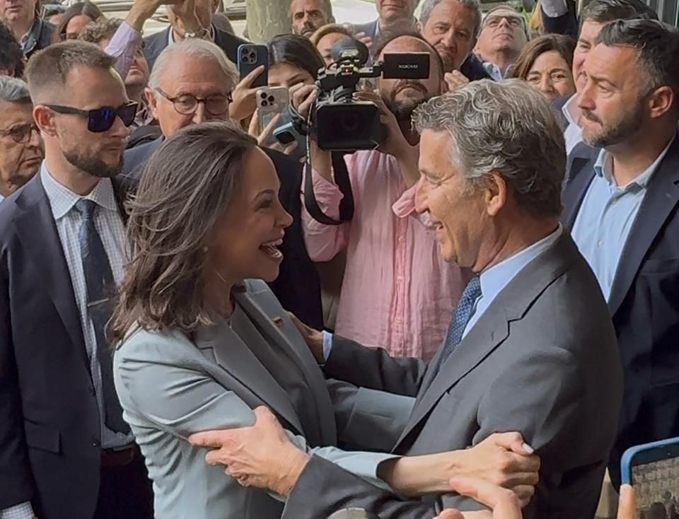 Feijóo recibe a María Corina Machado en Génova con un abrazo: "Valiente"