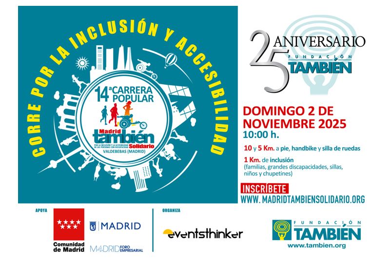 La Fundación También celebrará el domingo 2 de noviembre su XIV Carrera Popular Madrid También Solidario en Valdebebas, un evento que, en esta edición, marca el 25º aniversario de la entidad.