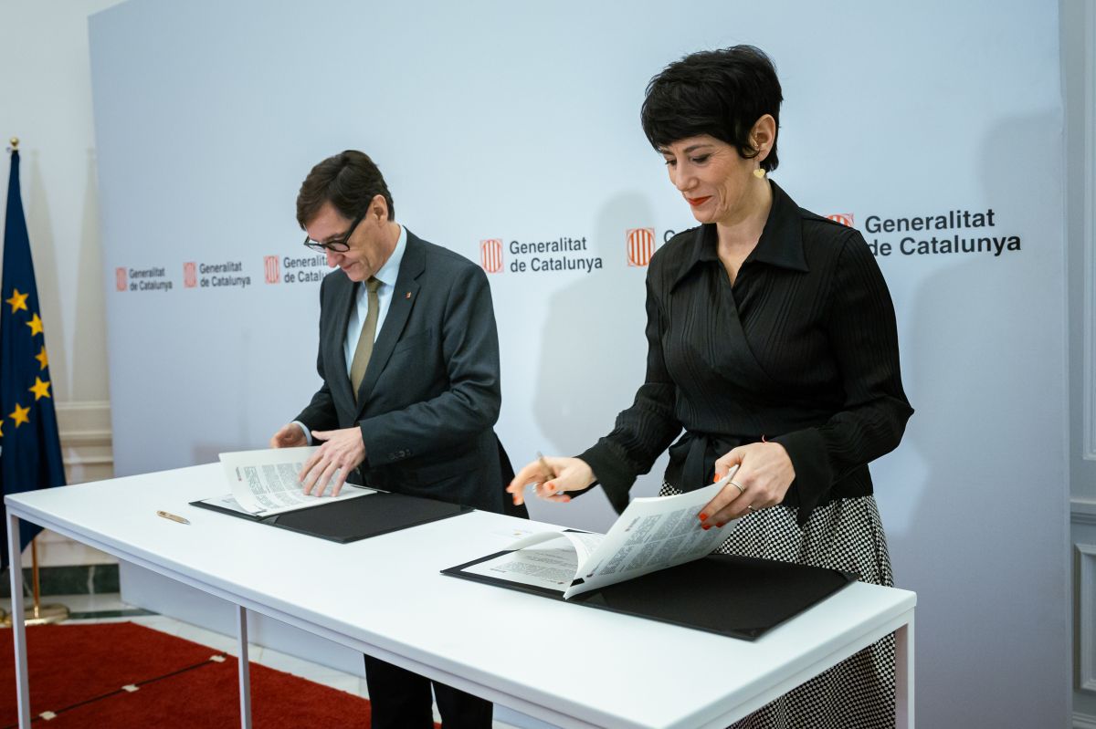 La ministra de Inclusión, Seguridad Social y Migraciones, Elma Saiz, y el presidente de la Generalitat de Cataluña, Salvador Illa, firmaron este viernes en Barcelona un convenio de colaboración, cuya duración es de cuatro años, para reforzar su compromiso y acción en la lucha contra los discursos de odio.