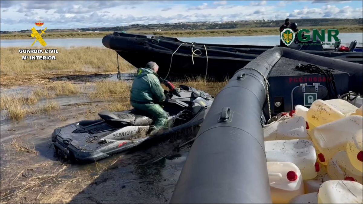 La Guardia Civil y la Guarda Nacional Republicana de Portugal (GNR) han coordinado un dispositivo conjunto de lucha contra el narcotráfico en el que han detenido a 15 personas e intervenido más de 1.500 kilos de hachís, 36 embarcaciones y 36.800 litros de combustible.