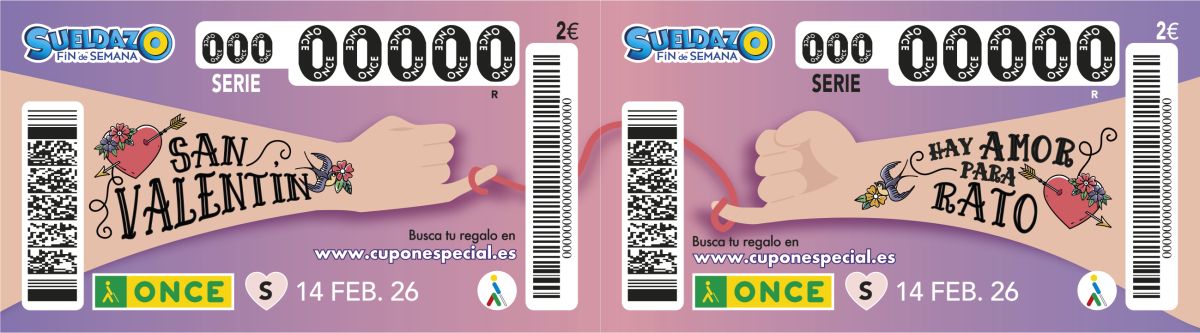 La ONCE celebrará San Valentín en su 'Sueldazo del Fin de Semana' del 14 de febrero.