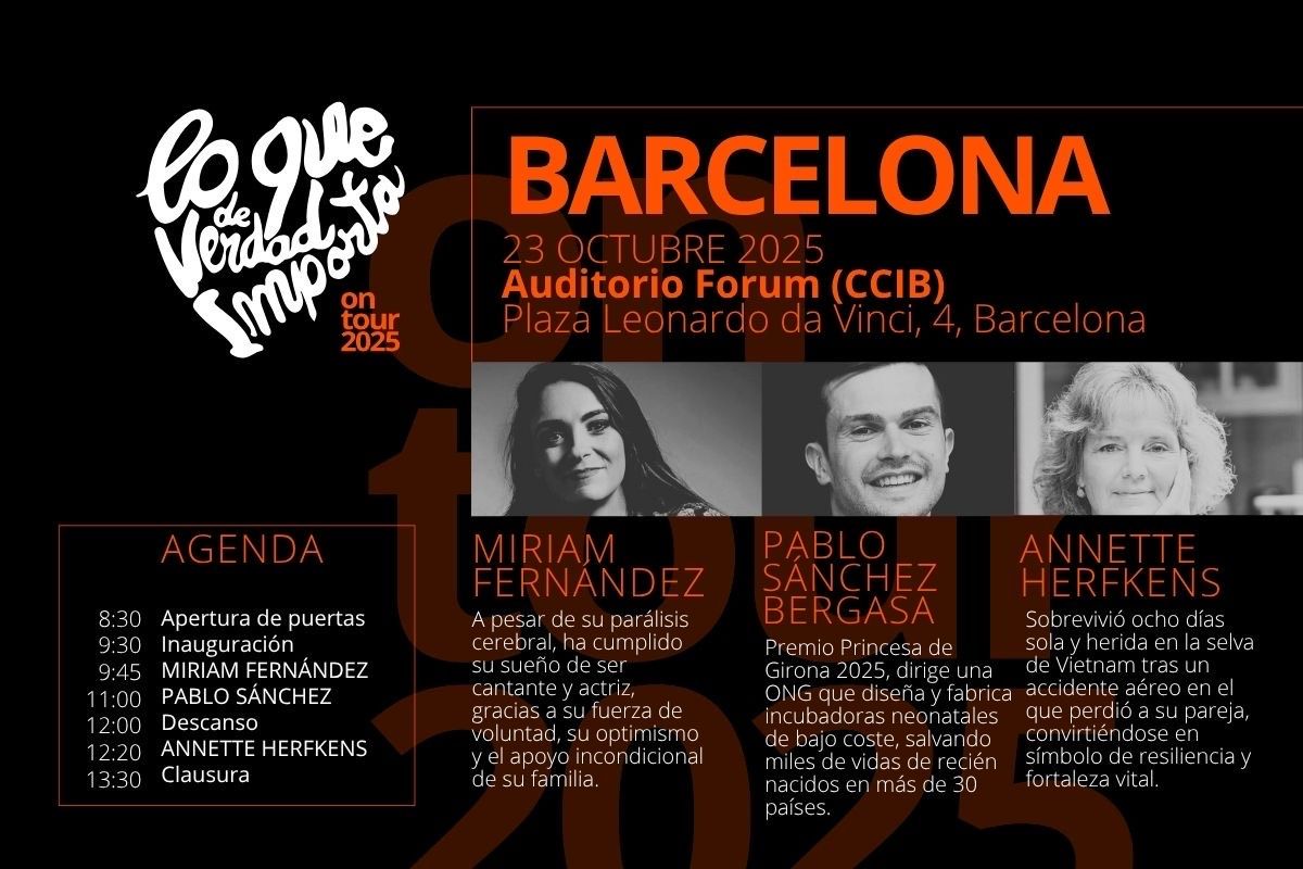 La Fundación Lo Que De Verdad Importa (Lqdvi) celebró este jueves en el Centro de Convenciones Internacional de Barcelona (CCIB) la 11ª edición de su Congreso para Jóvenes en la ciudad, con las intervenciones de la cantante y actriz Miriam Fernández, el ingeniero y emprendedor social Pablo Sánchez Bergasa y la superviviente Annette Herfkens, tres testimonios de vida que “reflejan valores de superación, compromiso social y resiliencia”.