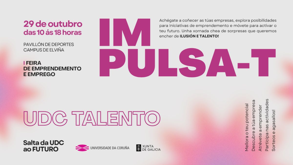 Esta actividad se encuadra en el programa UDC TALENTO, que impulsa encuentros entre empresas y entidades y estudiantes de la Universidade da Coruña, de todas las titulaciones, "para conocerse, explorar posibilidades y activar el futuro de nuestro entorno", informó la UDC. Se celebrará, el día 29, en el Pabellón de Deportes del Campus de Elviña, en A Coruña; y el 30, en el Pabellón Municipal de Esteiro, en el Campus Industrial de Ferrol.