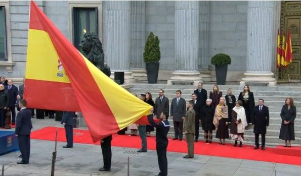 La Carrera de San Jerónimo acogió este sábado el tradicional izado de la bandera nacional con motivo del Día de la Constitución, dando así comienzo a los actos organizados por el Congreso de los Diputados para conmemorar el 47º aniversario de la Carta Magna.