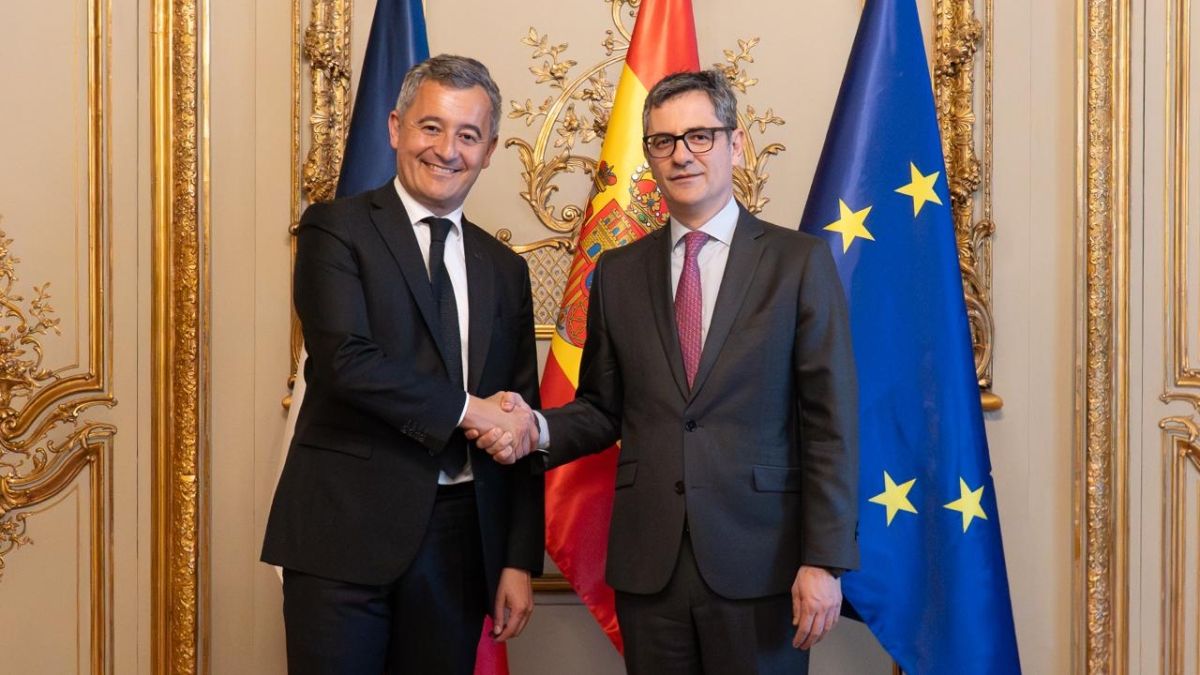 El ministro de la Presidencia, Justicia y Relaciones con las Cortes, Félix Bolaños, recibió este martes, en el madrileño Palacio de Parcent (Madrid), al ministro de Justicia de la República Francesa, Gérald Darmanin, y a una delegación de autoridades de este país, que viajaron a España para conocer el modelo de atención a las víctimas de violencia de género.