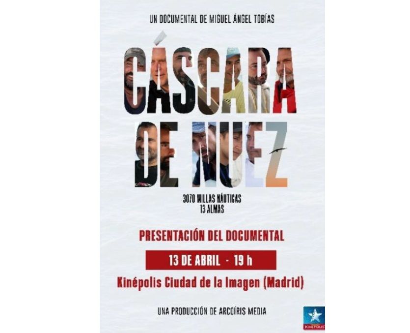 El próximo 13 de abril a las 19 horas, Kinépolis Ciudad de la Imagen (Madrid) acogerá el estreno de 'Cáscara de Nuez', el último documental del director y productor de 'El Camino Interior' (RTVE y Movistar), resultado de una travesía a vela desde España hasta América junto a once desconocidos que pusieron sus límites físicos y emocionales a prueba en mitad del océano.