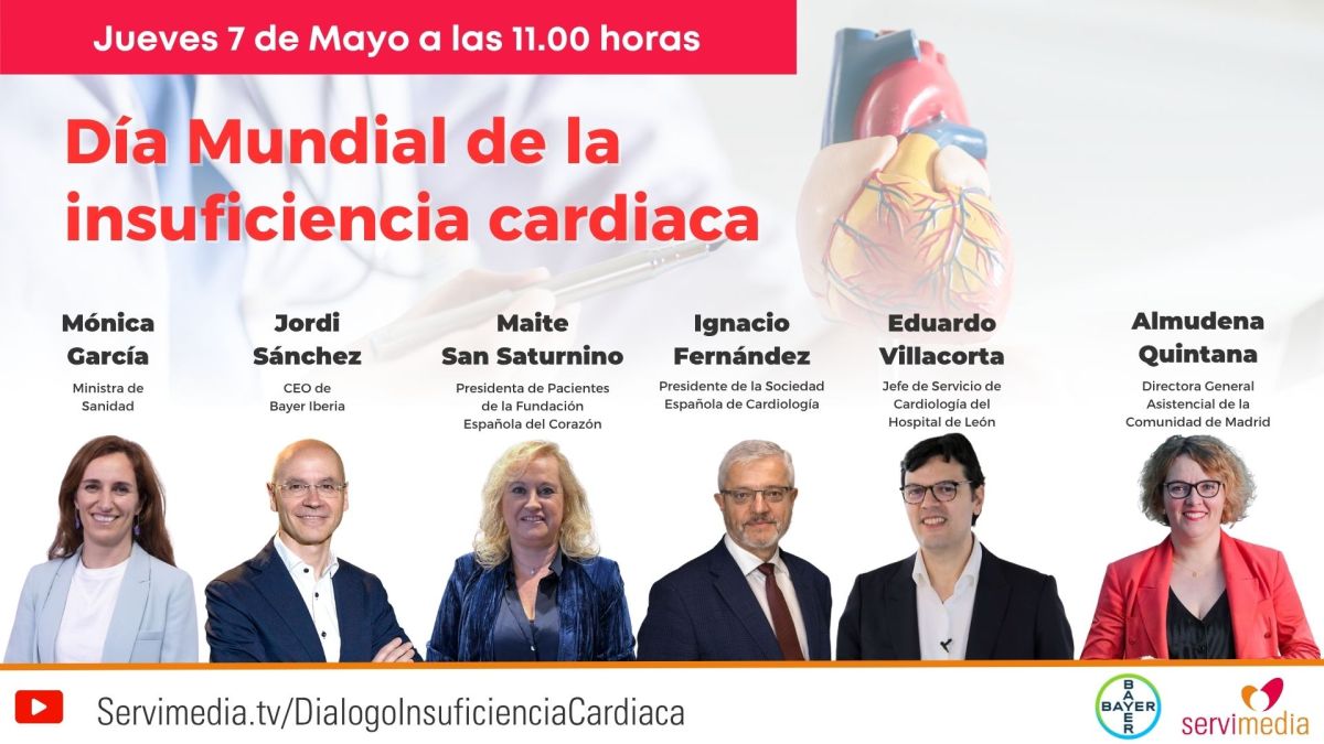 La agencia de noticias Servimedia celebrará el jueves 7 de mayo a las 11.00 horas un diálogo con motivo del Día Mundial de la Insuficiencia Cardiaca con el patrocinio de Bayer y la participación de la ministra de Sanidad, Mónica García.