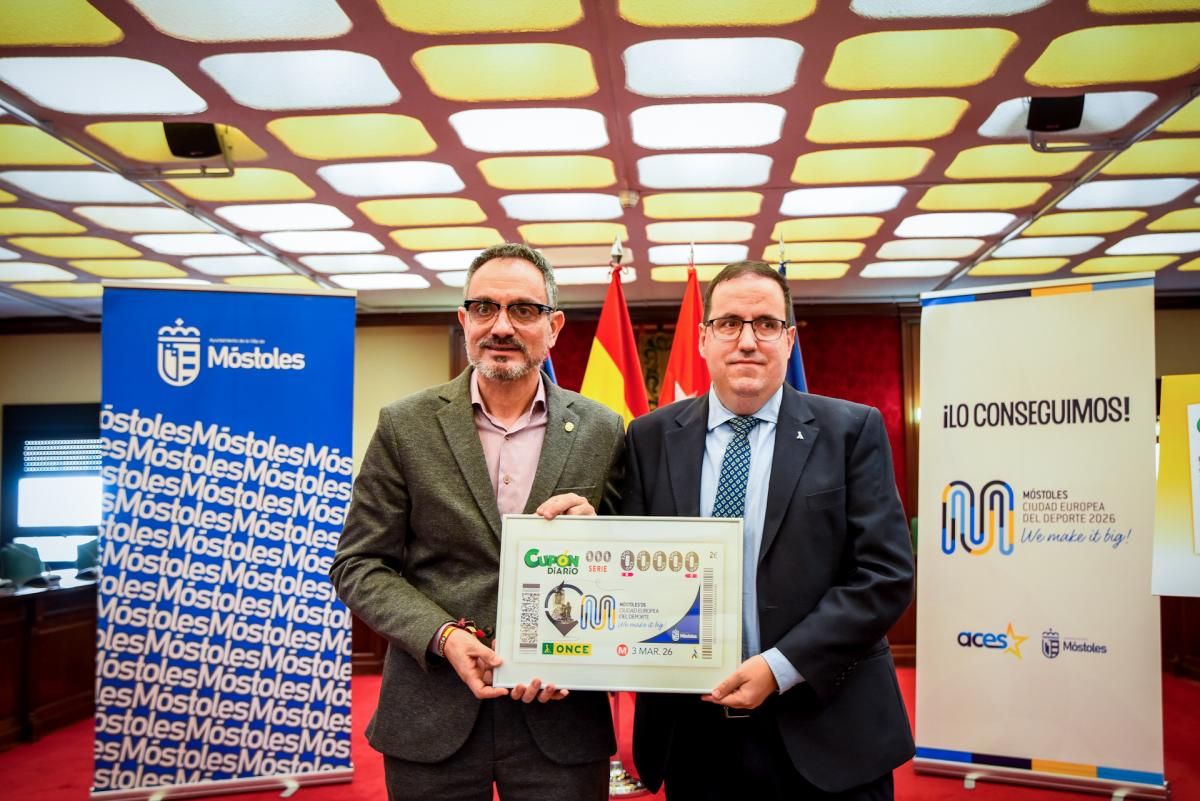 Móstoles, ‘Ciudad Europea del Deporte 2026’ es la protagonista del cupón de la ONCE de este martes. Cinco millones de cupones difunden el título concedido a esta localidad madrileña.