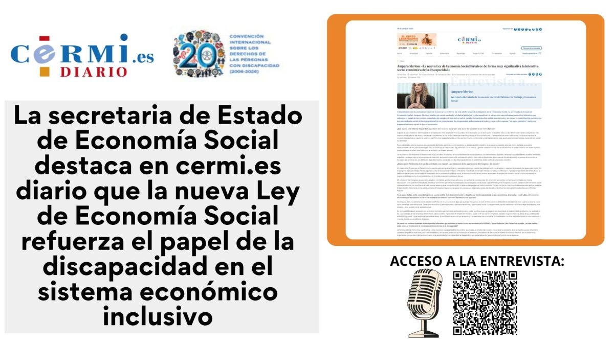 La secretaria de Estado de Economía Social, Amparo Merino, destacó que la nueva Ley Integral de Impulso de la Economía Social, en vigor desde este viernes, refuerza el papel de la discapacidad dentro de un sistema económico más inclusivo.