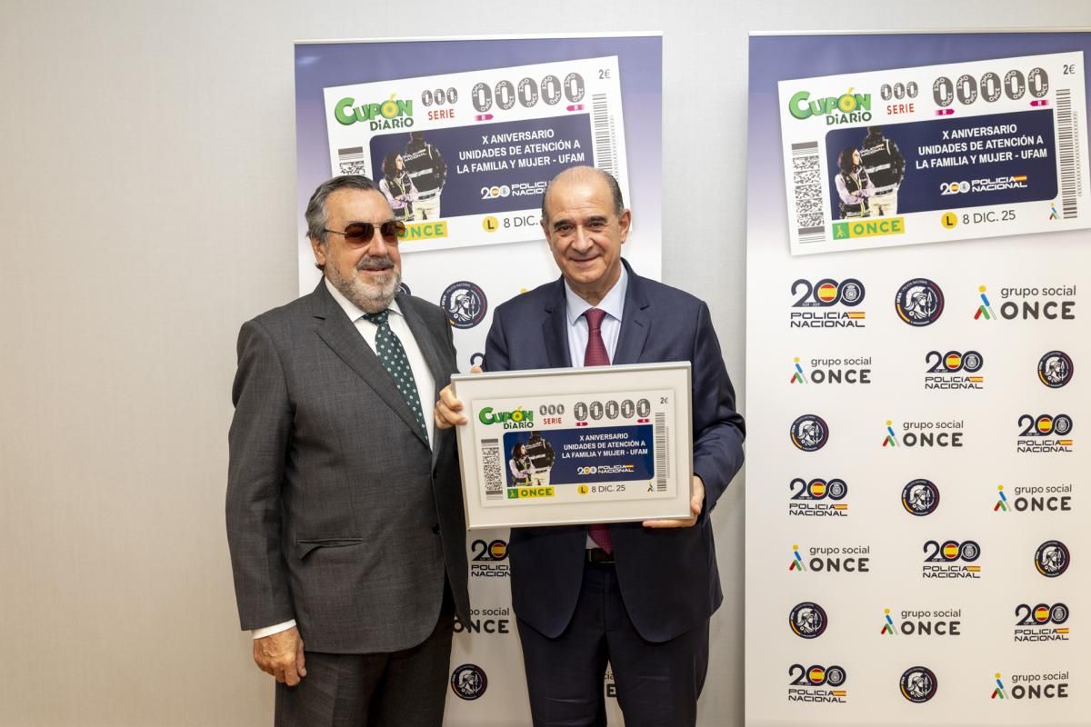 La ONCE dedica el cupón de este lunes, 8 de diciembre, a la Unidad de Atención a la Familia y Mujer de la Policía Nacional (UFAM) con motivo del décimo aniversario de este equipo, especializado en violencia de género, doméstica y sexual.