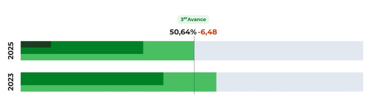 En los comicios de este domingo se sitúa a esta hora en el 50,64%, mientras que en 2023 era del 57,12%.