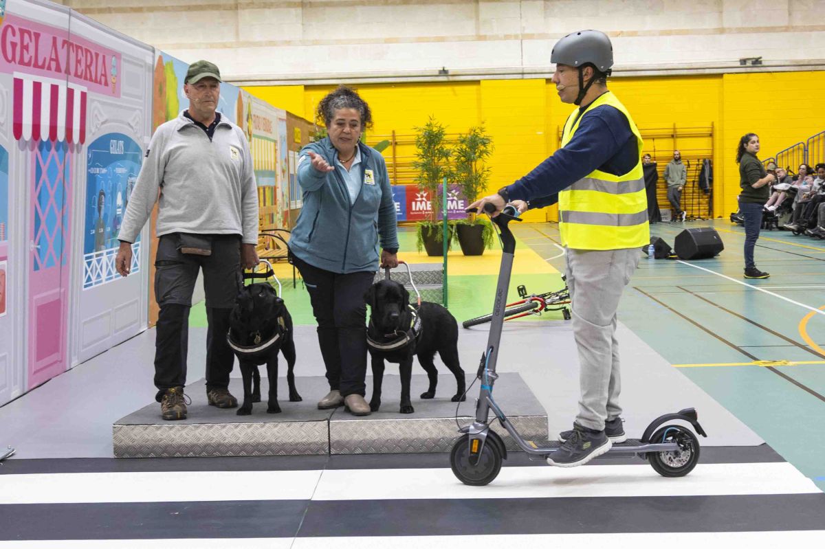 Según informó la ONCE, ambos mostraron en un circuito cómo es el proceso de adiestramiento para que los perros puedan salvar obstáculos, subir o bajar escaleras, cruzar pasos de cebra, buscar puertas o permanecer en una cafetería o en cualquier medio de transporte a los pies de una persona ciega como Carmen Soler y José Marcos Ruiz, usuarios de perro guía de Palma de Mallorca, que explicaron cómo es su vida diaria junto a Quelly y Oruk.