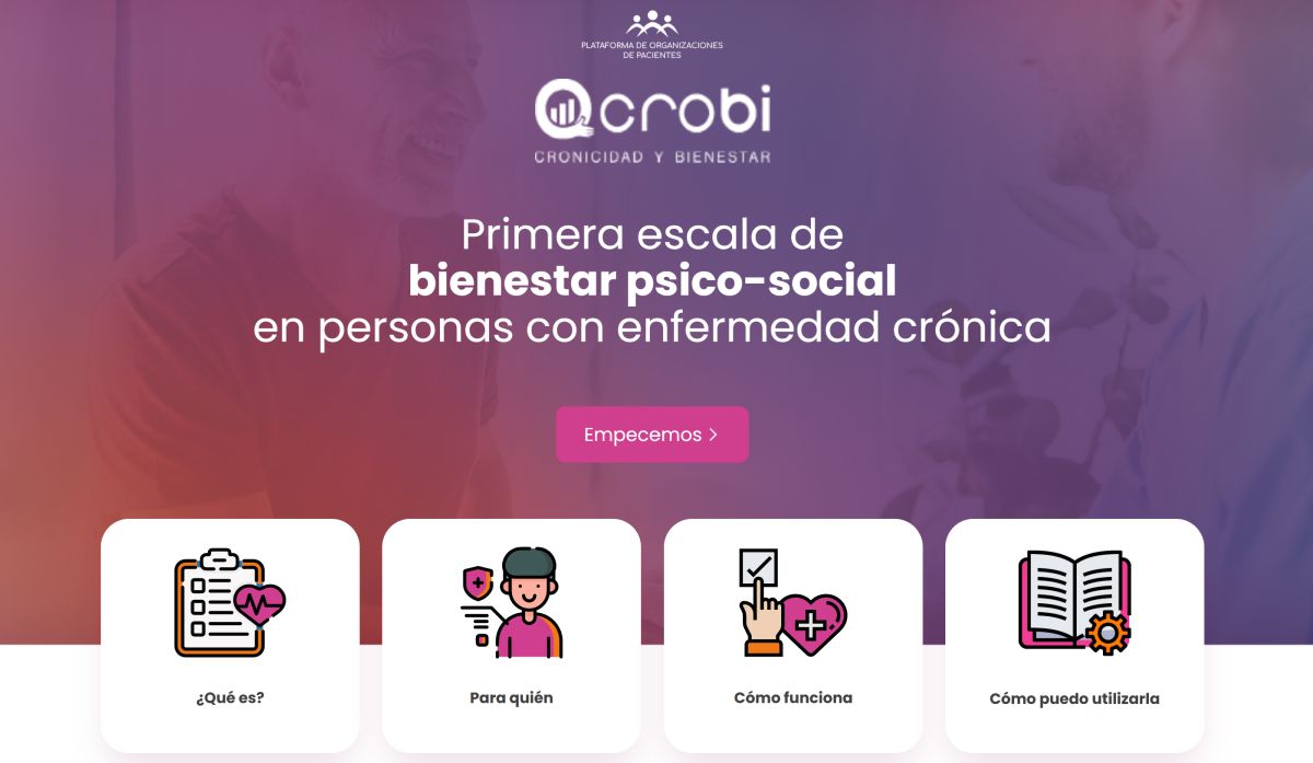 Crobi es la primera escala validada de bienestar para personas con patologías crónicas y permite medir cómo afecta la enfermedad en los planos psicológico, afectivo, emocional y sociolaboral. La herramienta se articula a través de un cuestionario anónimo de 24 ítems, cuyos resultados se presentan en una escala de 0 a 100 y pueden visualizarse tanto de forma global como por dimensiones.