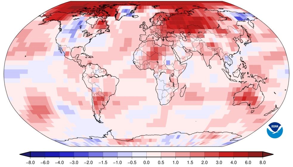 Hubo temperaturas mucho más cálidas de lo normal en la mayor parte de Europa, Asia occidental y meridional, amplias zonas de América del sur y Central, el Ártico y la mayor parte de Australia.
