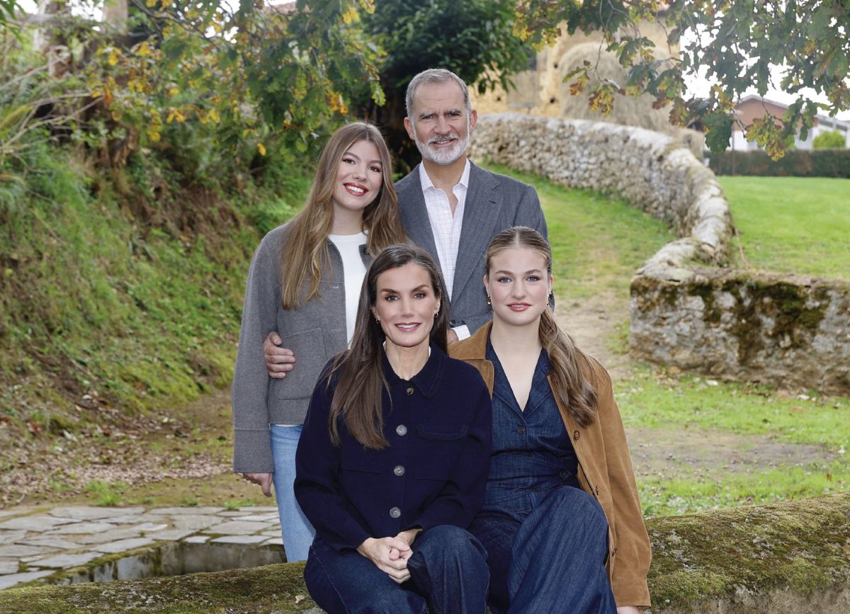 La Casa del Rey difundió este viernes la tarjeta postal con la que los Reyes y sus hijas, la Princesa de Asturias y la infanta Sofía, felicitan la Navidad, que este año tiene como imagen protagonista una fotografía de la familia real en el pueblo asturiano de Valdesoto.