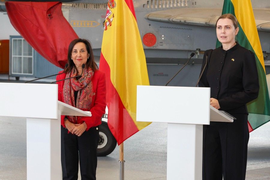 En la comparecencia conjunta, Sakalienė agradeció la contribución de España para asegurar el espacio aéreo de Lituania, y destacó que la actual es la novena rotación en la que España participa como Policía Aérea.