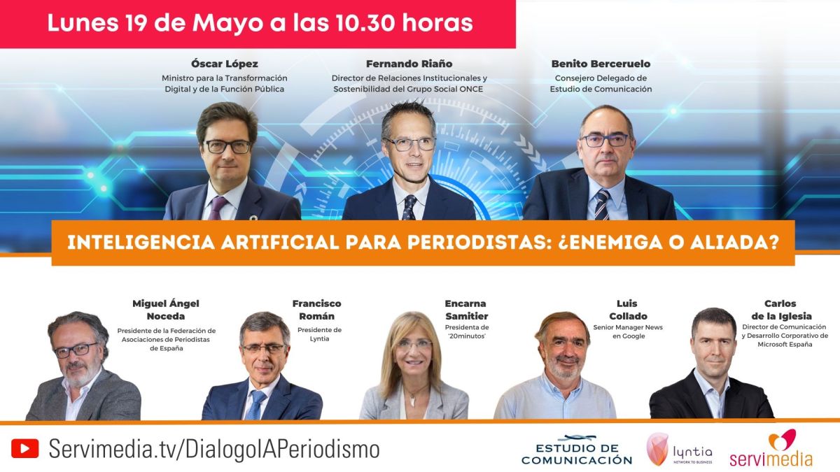 La agencia de noticias Servimedia retransmite este lunes, a las 10.30 horas, un diálogo sobre la 'Inteligencia artificial para periodistas: ¿enemiga o aliada?' junto a la Federación de Asociaciones de Periodistas Españoles (FAPE) y Estudio de Comunicación.