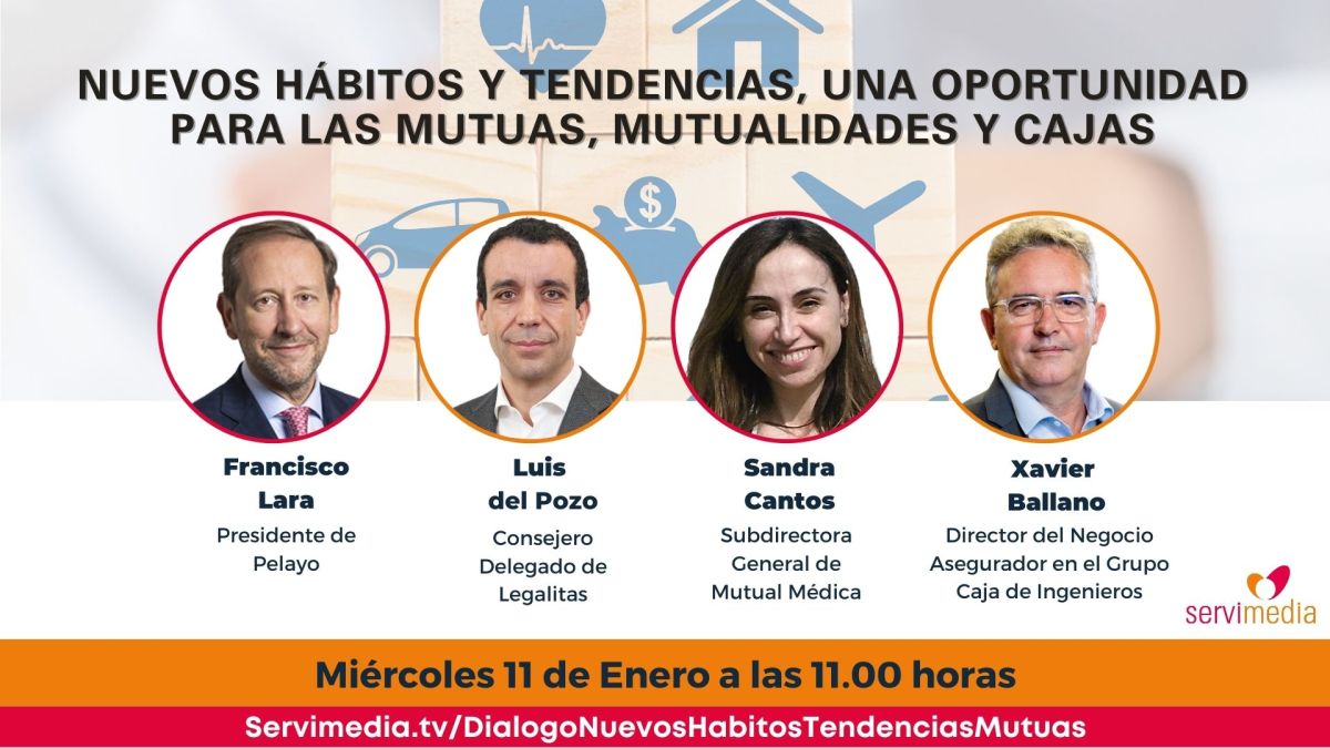 La agencia de noticias Servimedia celebra el miércoles 11 de enero a las 11.00 horas un diálogo sobre 'Nuevos hábitos y tendencias, una oportunidad para las mutuas, mutualidades y cajas' con el fin de analizar las novedades del sector.