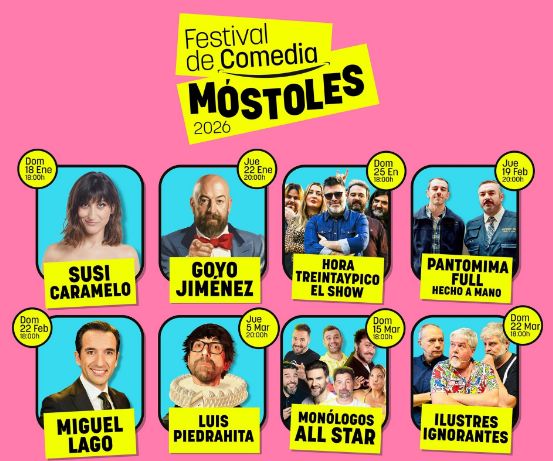 El Ayuntamiento de Móstoles presentó este martes la III edición del Festival de Comedia, un certamen que se celebrará entre el 18 de enero y el 22 de marzo de 2026 y que reunirá a más de treinta artistas entre los mejores cómicos y monologuistas del panorama nacional, como Susi Caramelo, Goyo Jiménez, Ilustres Ignorantes (Javier Coronas, Raúl Cimas y Pepe Colubi) y Pantomima Full.
