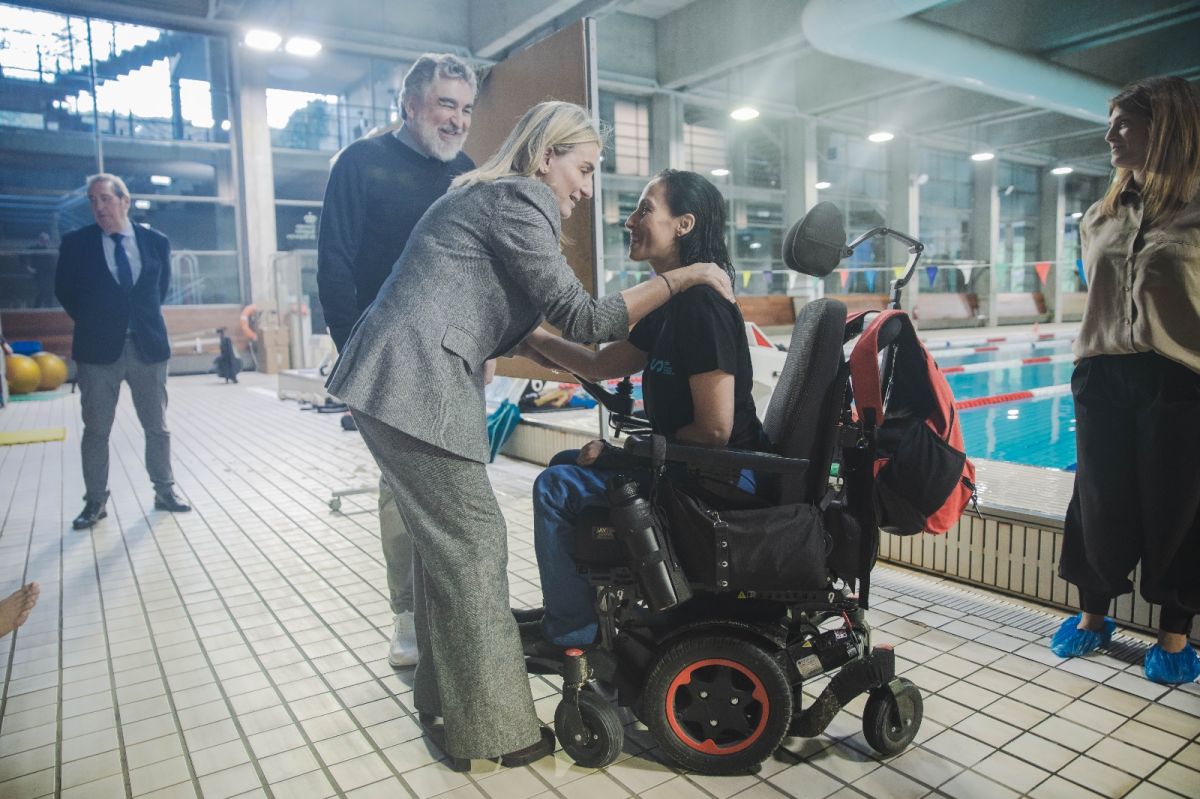 La ministra visitó las salas de entrenamiento de judo, gimnasia rítmica, gimnasia artística, bádminton y esgrima, así como la piscina cubierta de 50 metros y las instalaciones de atletismo, donde saludó a deportistas y técnicos.
