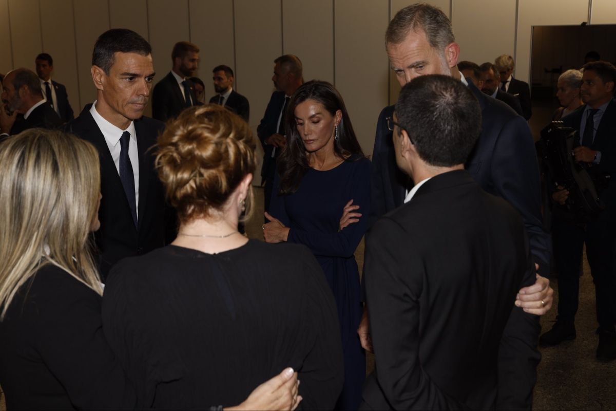 Precisamente doña Letizia, visiblemente emocionada, abrazó y consoló a los familiares de los fallecidos con los que los Reyes mantuvieron un breve encuentro antes del inicio del homenaje. En ese saludo previo estuvieron presentes también el presidente del Gobierno, Pedro Sánchez; los presidentes del Congreso y del Senado, Francina Armengol y Pedro Rollán, respectivamente; y la delegada del Gobierno en la región, Pilar Bernabé. Quien no participó de ese momento fue el presidente valenciano, Carlos Mazón.